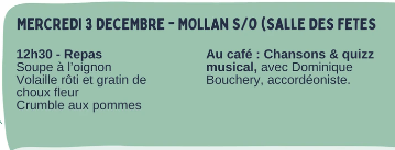 Repas supplémentaire à Mollans-sur-Ouvèze le 3 décembre 2025 à 12 h
